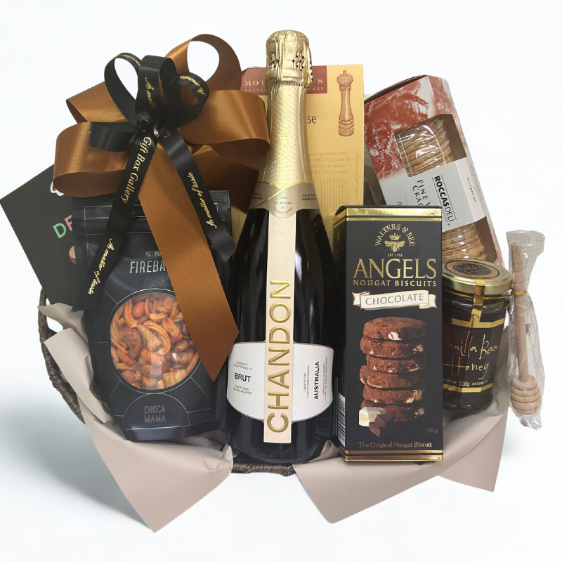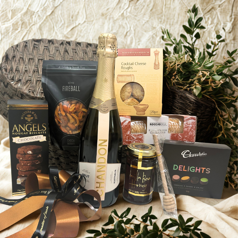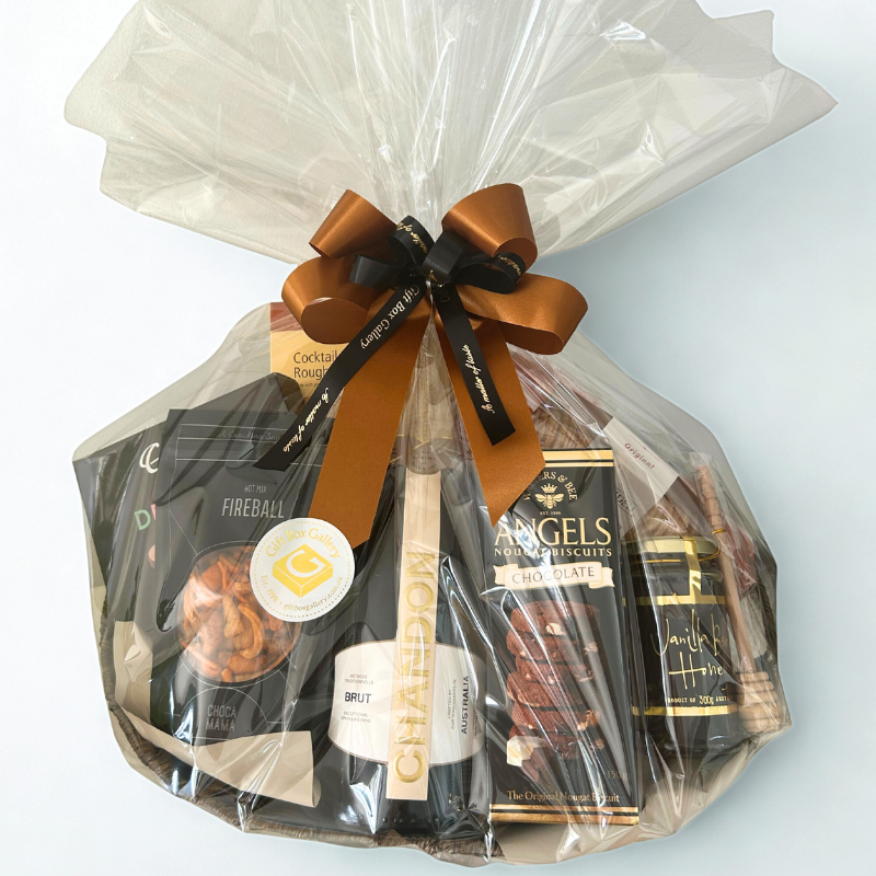 For deliveries outside the Gold Coast, this hamper is presented in a signature black gift box to ensure it arrives safely and beautifully.