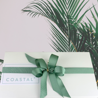 Presented in a premium double wine gift box with fold-over lid, finished with your corporate colour coordinating ribbon and logo gift card (coastal featured in photo but can be any brand)